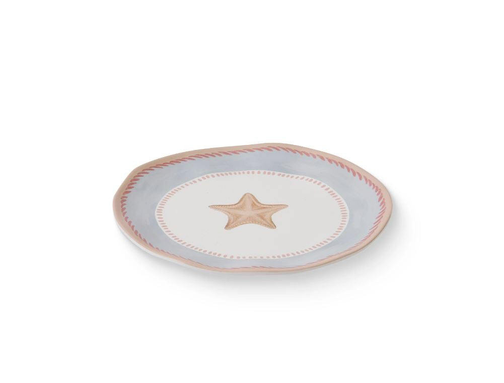 Small melamine plate with handpainted starfish design and painted border detail.